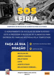 O Agrupamento de Escolas do Bom Sucesso está a dinamizar uma campanha de recolha de alimentos destinada a apoiar as famílias afetadas pela recente tempestade que atingiu a região de Leiria.