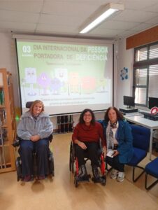 O programa incluiu a sessão “Construir um Futuro Mais Inclusivo, Sustentável e Transformador”, realizado no dia 3 de dezembro, com a participação de uma ex-aluna do Agrupamento, atualmente docente na nossa escola, a professora Beatriz Penelas, que partilhou o seu percurso enquanto pessoa com deficiência motora, contando também com a presença da Vereadora da Câmara Municipal de Vila Franca de Xira, Manuela Ralha e do Presidente da Junta de Freguesia de Alverca do Ribatejo e Sobralinho, Carlos Gonçalves.