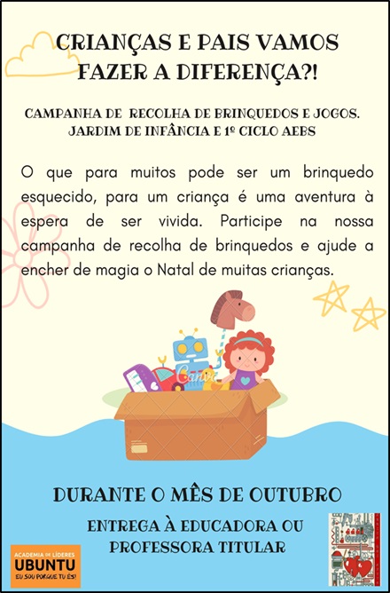 Convidamos todas as famílias a participar, entregando os brinquedos à educadora ou professora titular.